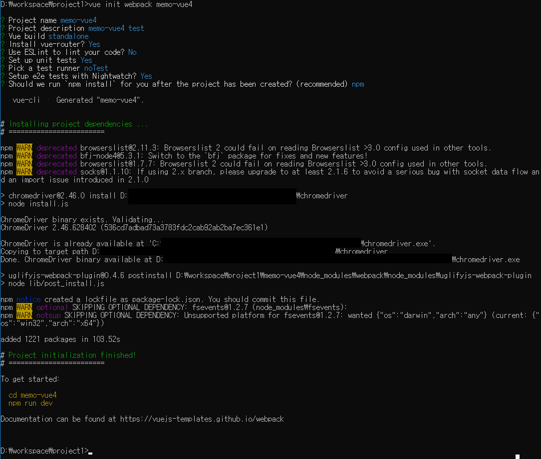 - Setup e2e tests with Nightwatch? E2E(End-to-End) 테스트 환경으로 Nightwatch 를 설치 할지 여부