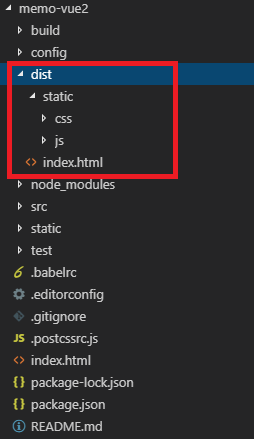 - dist 폴더에 모든 js,css html , image 등을 build 해서 저장