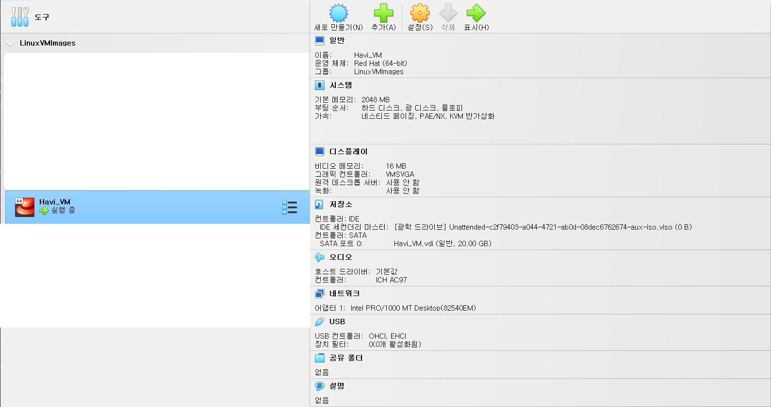 - 새로 만들기 : 신규 VM을 설치하고 생성