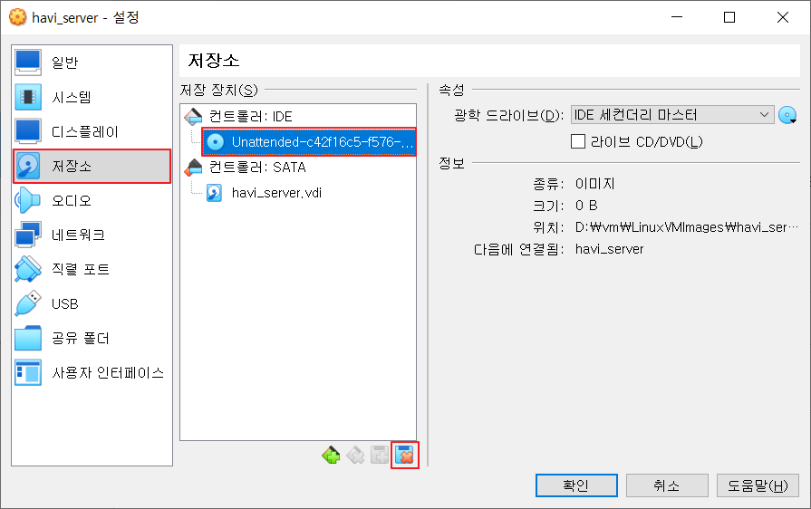 2) [저장소] - [컨트롤러: IDE] 에 잡혀있는 저장소 삭제