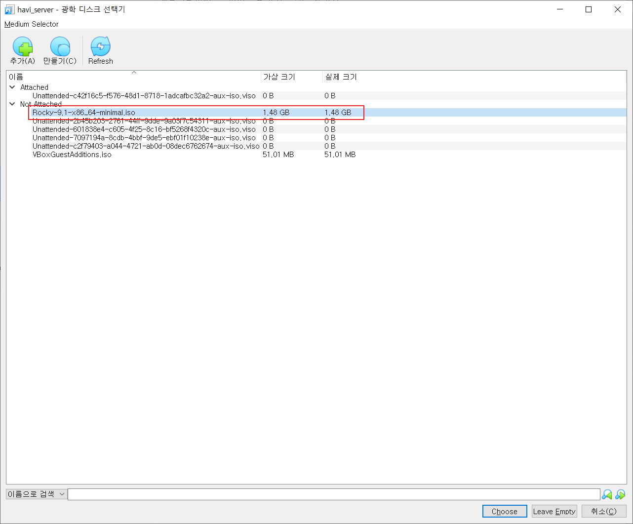 - 만약 ISO가 없을시에 상단에 [추가]를 눌러 해당 ISO파일 추가