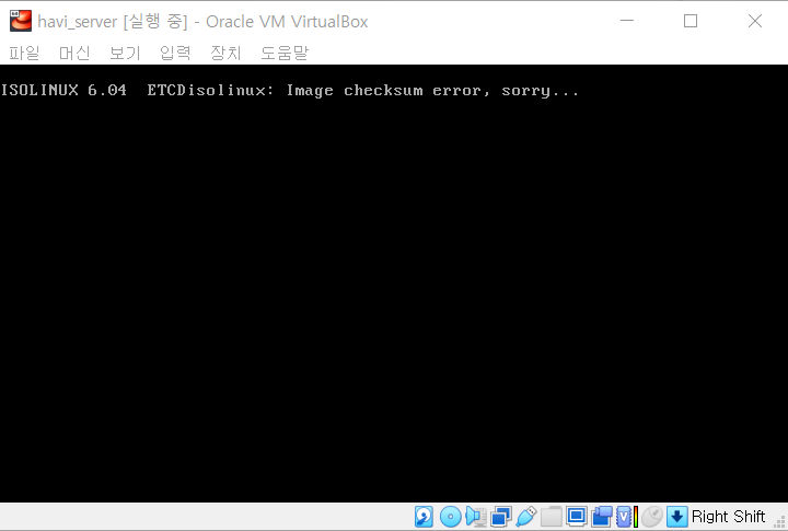 1. VM 생성후 버츄얼 박스 실행시 checksum 오류