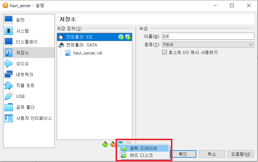5) 추가 후 [확인] 하여 완료 그리고 VM 시동